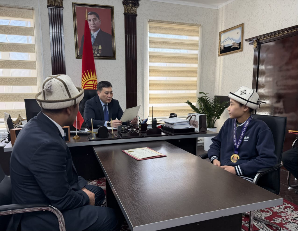 Лейлек районунун мамлекеттик администрациясынын башчысы-аким Имранды жана анын окутуучусун кабыл алып, балдарга билим жана тарбия берүүдөгү эмгеги үчүн ыраазычылык билдирип, Имранга белек тапшырды.